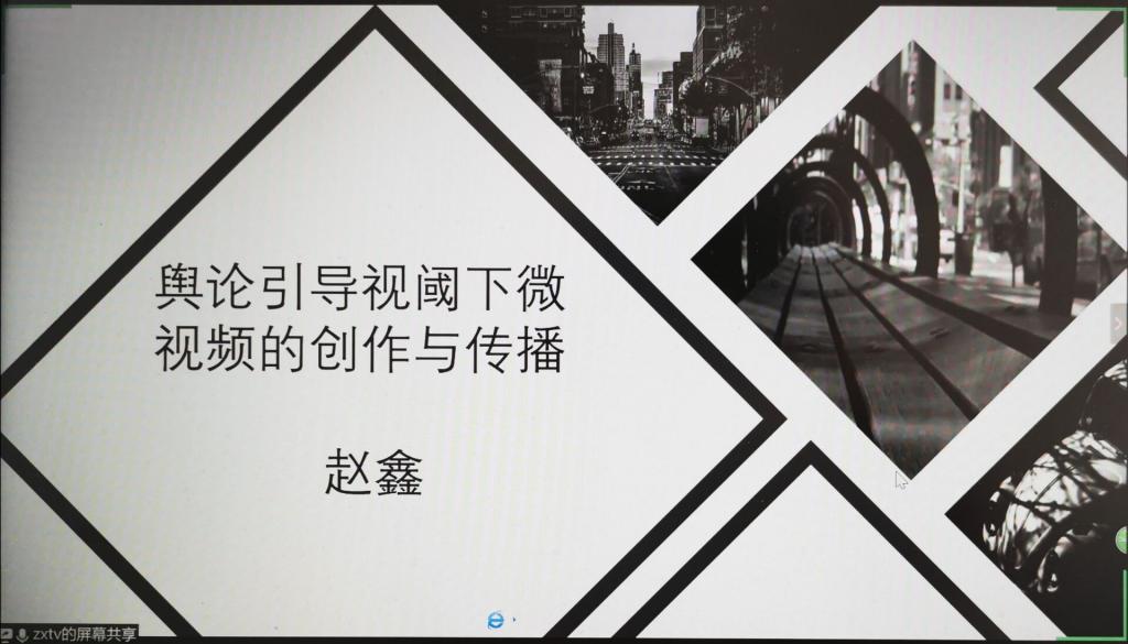 赵鑫教授以“舆论引导视阈下微视频的创作与传播”为主题,围绕短视频定义、短视频类型与传播平台、新时代舆论引导下微视频的新需求、微视频的创作创新、微视频校园传播应注意的问题五个方面做了深入阐述。会议过程中,赵鑫教授首先向大家介绍了微视频本身短小精悍、碎片化、轻量化和社交化的四个鲜明特点以及以手机、平板电脑等为主的多种视频终端设备。随后,赵鑫教授讲解了微视频的类型及三个传播梯队,并借助图文数据和视频等形象直观地展示了短视频节目的多元化特征。接着,赵鑫教授结合新时代舆论引导视阈的大背景,深入浅出地为同学们明晰了微视频的新需求,即微视频要做到形式多元、创意为先、内容为王、技术助力等。最后,赵鑫教授总结了校园微视频创作与传播的六项要求,即要兼顾政治与艺术、平衡理性与情感;把握主旋律,深入生活;激活想象力,传播正能量;发扬创意,注重个性表达以及重视策划内容与宣传效果。至此,本次培训会议顺利结束。