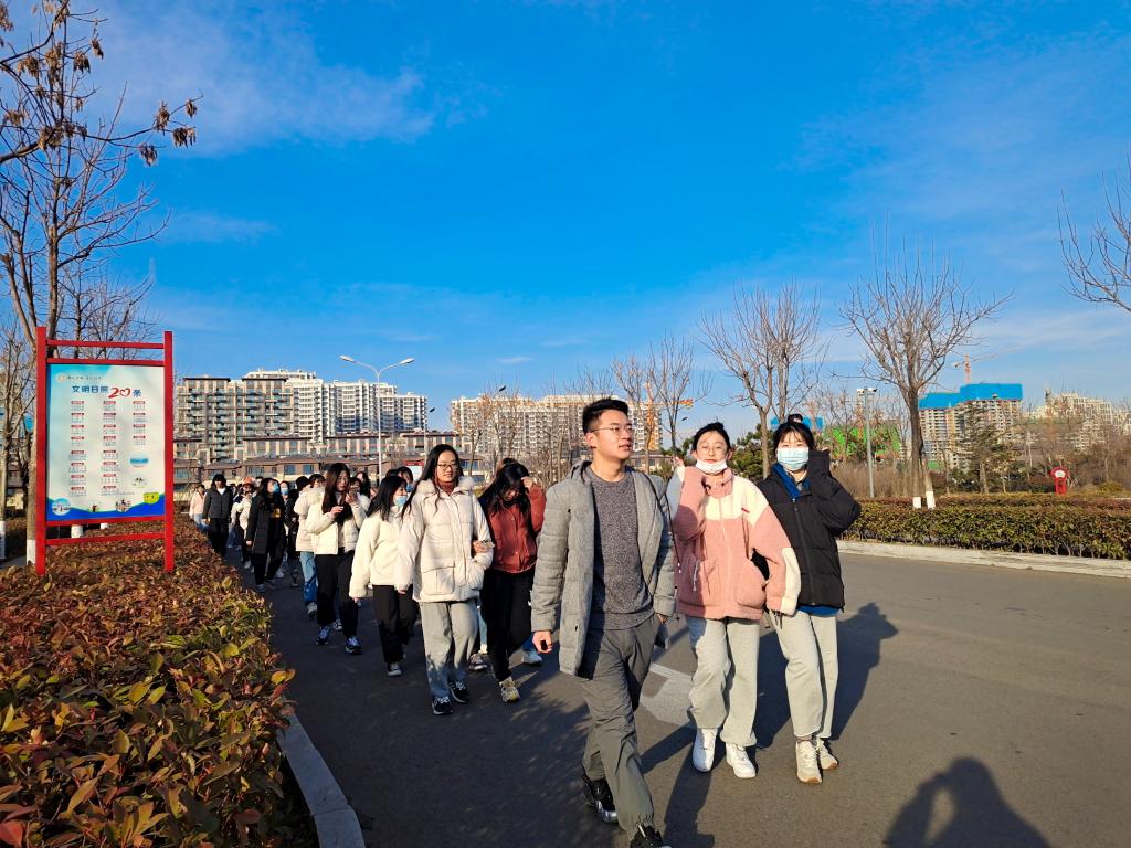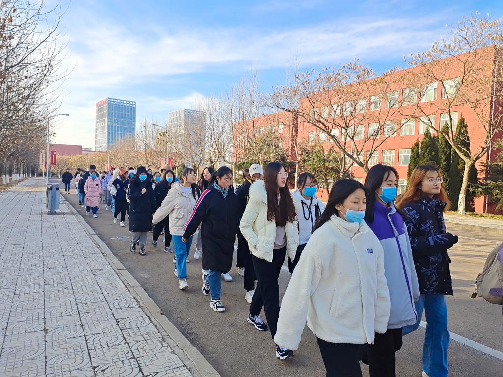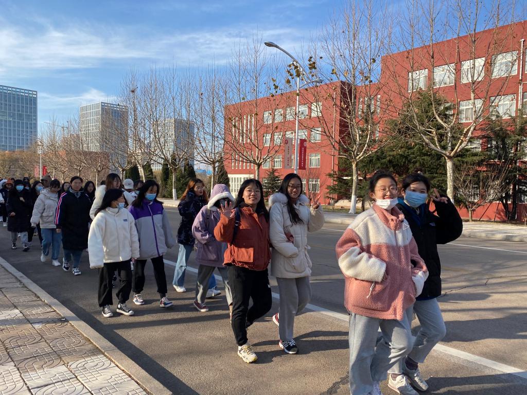 活动伊始,同学们在西操场主席台处点名集合,由教练统一带领徒步前往拉练地点。一路上,大家情绪高昂,兴致勃勃地朝着目的地前进。在教练的悉心指导和大家的相互鼓励下,同学们克服了严寒的天气和长距离徒步等困难,相继到达目的地。随后,大家自由分组,相伴体验东夷小镇的风土人情。这里渔家院落式客栈及传统美食商铺交错分布,戏台茶楼、六一书院镶嵌其中。与往常枯燥的运动训练相比,这次健步走活动更显丰富多彩、轻松愉快。最后,体育部成员引领同学们自行返校。至此,本次东夷小镇拉练活动圆满结束。