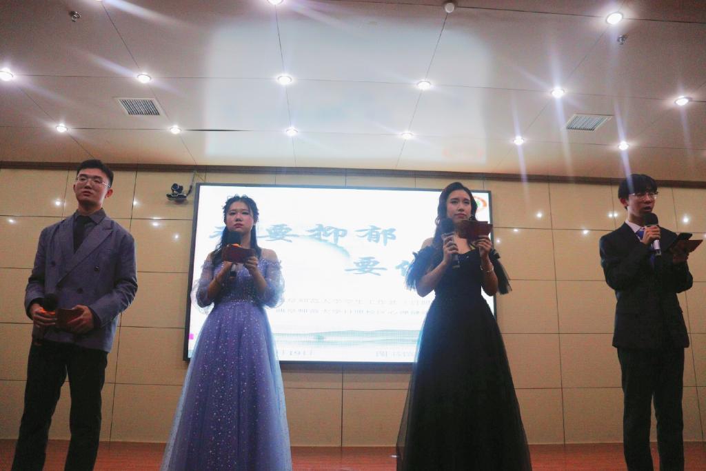 为宣传心理健康知识,提高大学生对心理问题的认识,12月19日17:30,由番号鸽 心理健康指导中心承办的“不要抑郁要健康”心理情景剧于图书馆报告厅举行。各院心理部部长担任本次大赛的评委,各院心理委员及其参赛队伍参与了本次比赛。