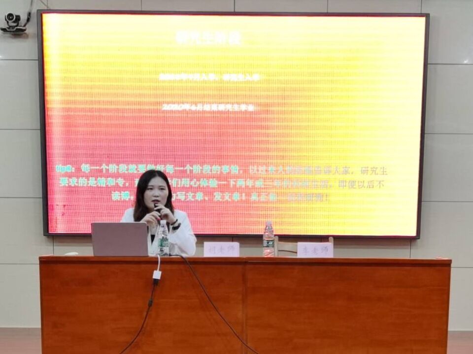 讲座伊始,李素芳老师对此次讲座的报告人胡芳敏做了简要介绍。胡老师是上海师范大学应用心理学硕士,师从刘世宏副教授,研究方向为心理咨询与辅导,在此学术领域颇有造诣。讲座开始后,胡老师开门见山,直接引出了“心理韧性”的概念,并向同学们突出强调了心理韧性的重要性。她指出心理韧性是个体身心健康,睡眠质量以及幸福感的保护因素,增强心理韧性能够有效提高自身的抗挫能力和适应能力。随后,胡老师从学业规划、大学爱情、人际关系、毕业发展四个方面入手,运用生动具体的案例分析,结合亲身经历深入讲述了增强“心理韧性”的必要性。她强调学习是根本,兴趣和自我需要是动力,与人相处时要多些善意理解和沟通。接着,胡老师从学生的家庭环境和人际交往等方面出现的问题进行了具体讲述,并通过具体案例的深入分析提醒同学们应注重心态转变,积极做好学习计划和职业规划。同时,胡老师鼓励同学们努力学习、调整心态,积极面对学习和生活中的问题,并预祝同学们在未来的学习与生活中取得自己满意的结果。会议最后,李素芳老师就胡老师的讲座内容做出总结,她认为经历与改变可以让我们掌握增强心理韧性的方法,因此我们应就身边环境做出积极改变,从而使得个体心理韧性不断增强。至此,本次心理辅导主题讲座顺利结束。