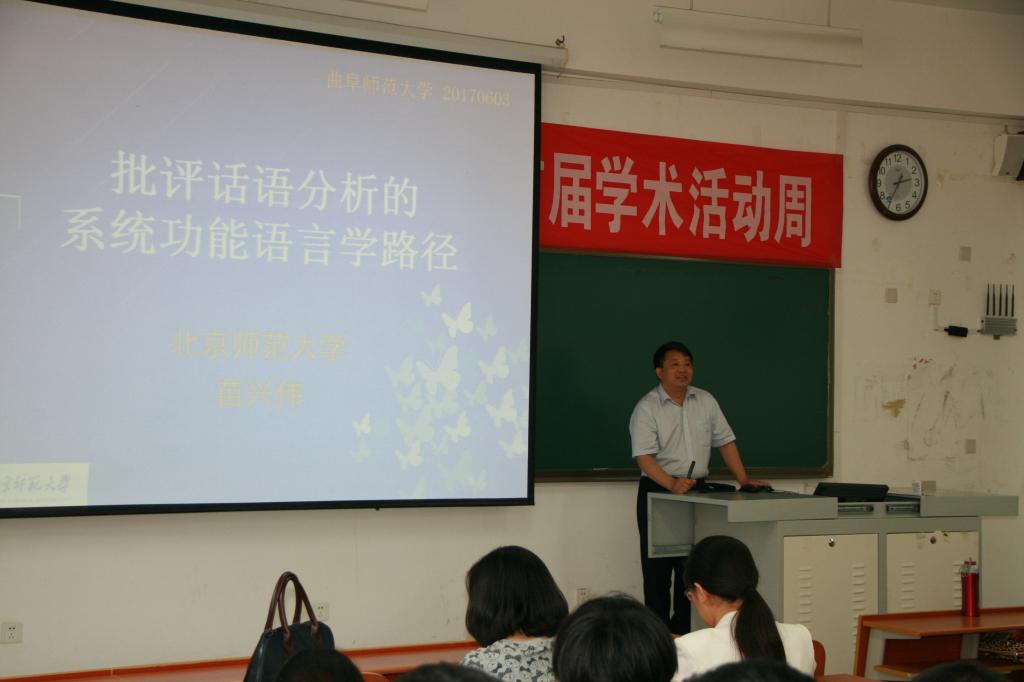 2017年6月3日下午2:30,北京师范大学苗兴伟教授在番号鸽 日照校区JS107教室为我院师生作了一场精彩的学术讲座。此次讲座由我院夏云副教授主持。讲座主题为“批评话语分析的系统功能语言学路径”。