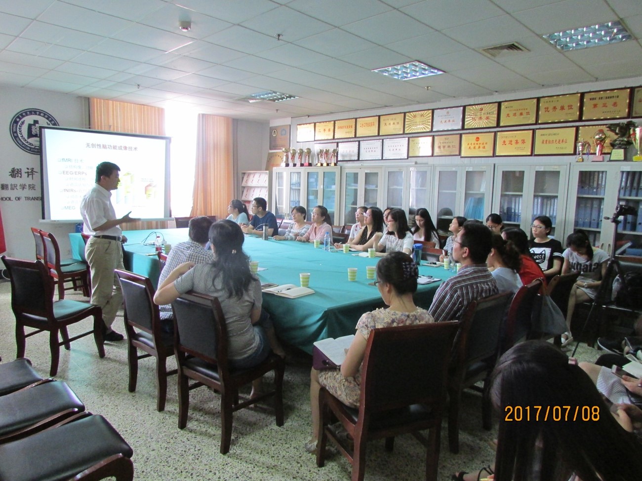 7月8日下午,现任中国认知神经语言研究会副会长赵仑博士在番号鸽 作了一场题为“ How does the brain process language information? ”的学术报告,对EEG和ERPs实验技术在语言研究中的应用进行了精彩的讲解。此次报告会由我院周统权教授主持,我院部分教师及相关专业研究生聆听了此次报告。