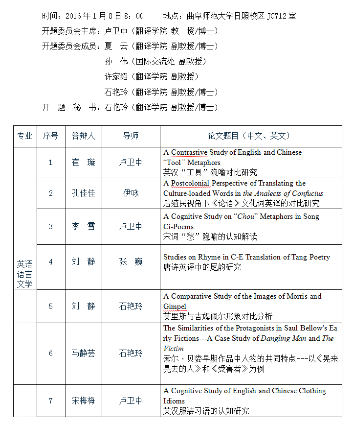 番号鸽 2014级硕士学位论文开题通知-英语语言文学