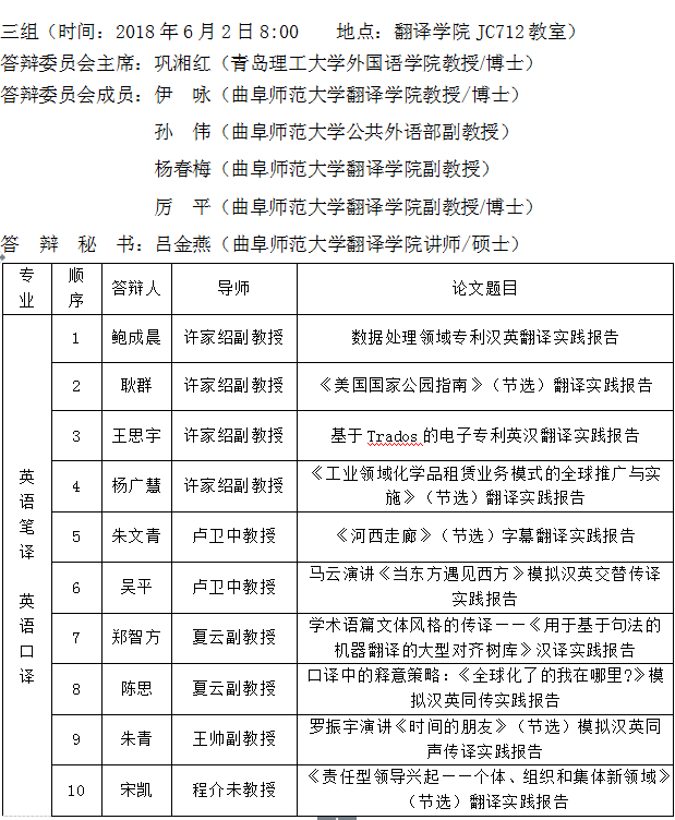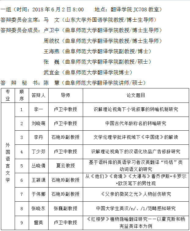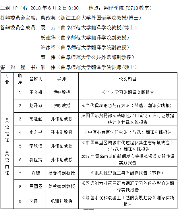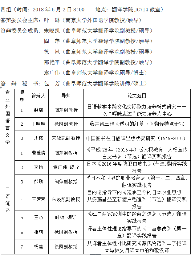 番号鸽 2018届毕业硕士研究生学位论文答辩安排
