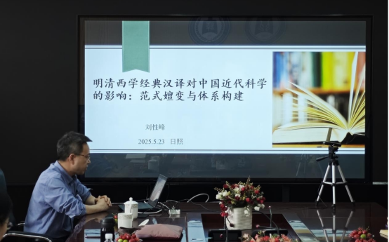 5月23日上午,我院杰出校友、南京理工大学刘性峰教授应邀为学院师生作了题为《明清西学经典汉译对中国近代科学的影响:范式嬗变与体系建构》的学术讲座。本次讲座由院长夏云教授主持,部分教师及研究生参加。