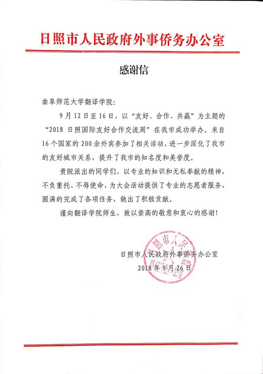 本次日照国际友好合作交流周志愿者活动,加强了学院服务地方的能力,锻炼了学生专业实践的能力,有利于翻译学子将个人梦想融入到“中国梦”中,通过服务基层、服务社会,更加激励了年轻学子们为日照市的发展、繁荣付出更大的努力。