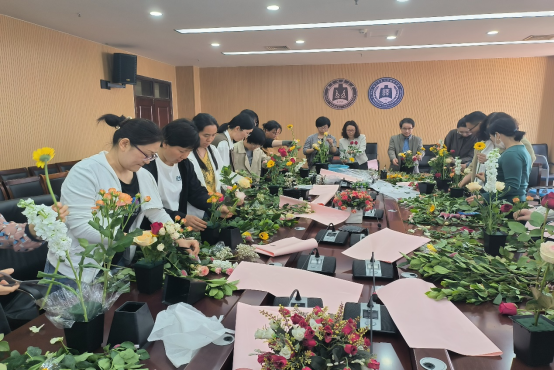 分工会在学院801会议室顺利举办以“迎‘五一’庆校庆绽芳华”为主题的自由插花共享会活动,该活动是学院分工会传统文化素养拓展活动之一,由学院分工会主席徐凤教授主持。