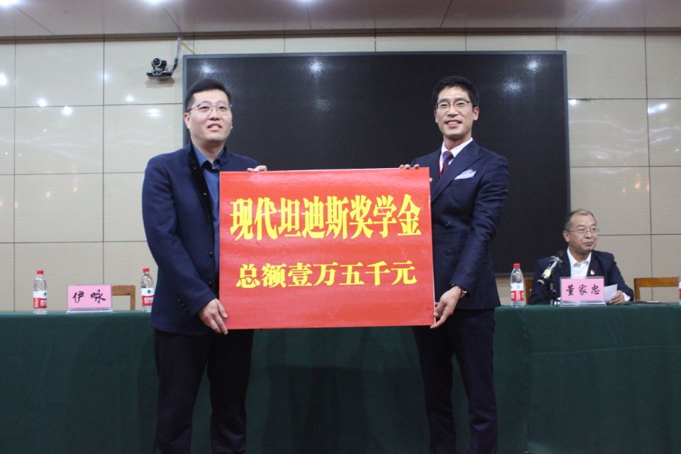 朝鲜语专业设立了总额一万五千元的“现代坦迪斯”奖学金,朝鲜语系主任周磊老师代表学院接受授权。至此,本次活动圆满结束。