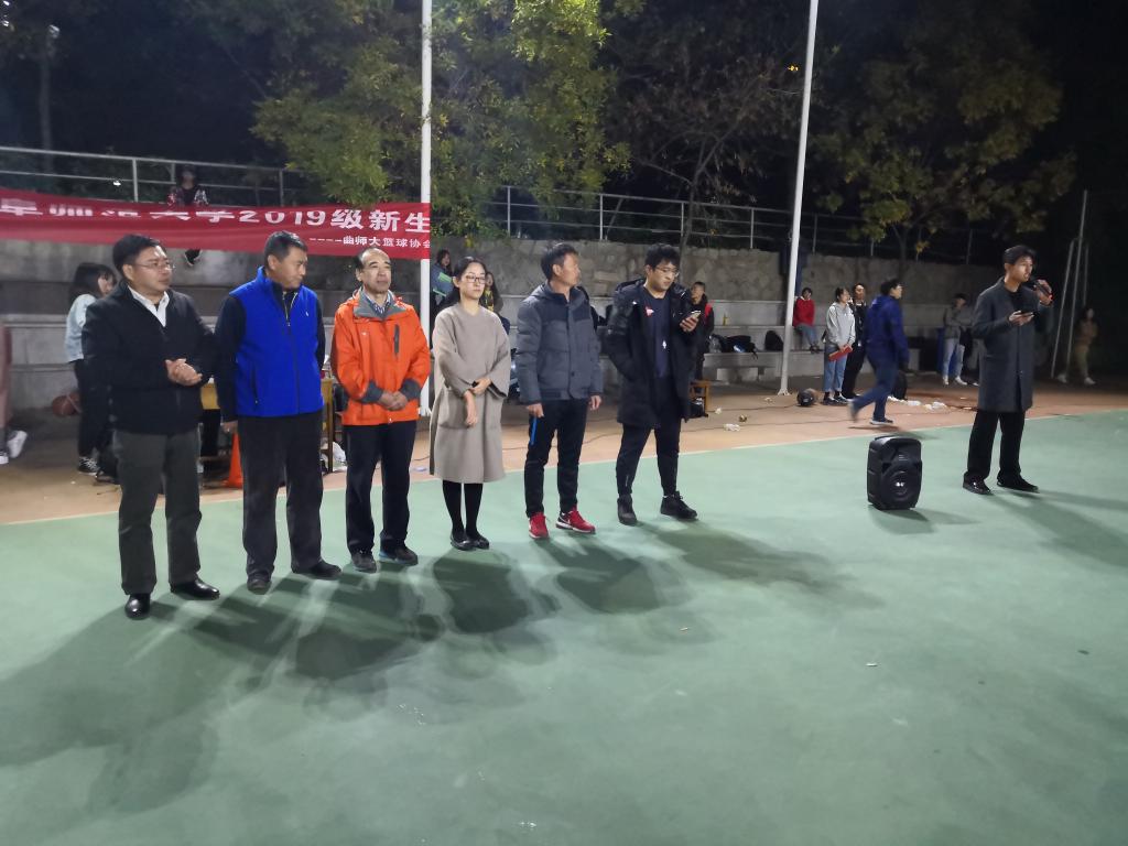 “迎新杯”篮球赛决赛暨闭幕式于东操场灯光球场举行。体育教学部王哲、毕思泉老师出席了闭幕式。来自各学院的十六支球队也参加了本次活动。