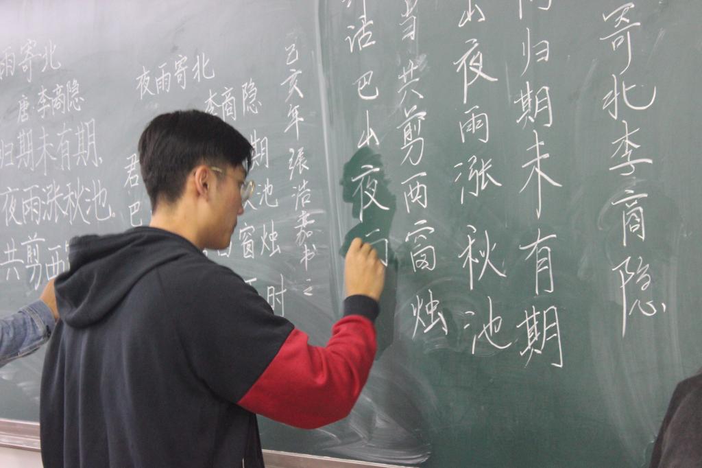 活动伊始,参赛者们自信满满,各自有序就座,等待比赛开始。按照组织方规定内容,参赛者须根据所报类目,相应完成硬笔作品、毛笔作品以及粉笔作品。此外,参赛者需要自备钢笔与毛笔,入场后统一发放比赛用纸,作品力求书写规范、字体美观。比赛过程中,参赛者们笔走龙蛇、龙飞凤舞,文字作品如行云流水般,令人赏心悦目。经过半个小时的角逐,参赛者们都已经完成各自的比赛作品。经过评委的仔细评选,王怡苏、房师远、王怡苏获得钢笔组,粉笔组与毛笔组一等奖。各组成绩前三名的同学将被推荐至校级比赛。至此,第二届“杏坛杯”三字笔大赛圆满结束。
