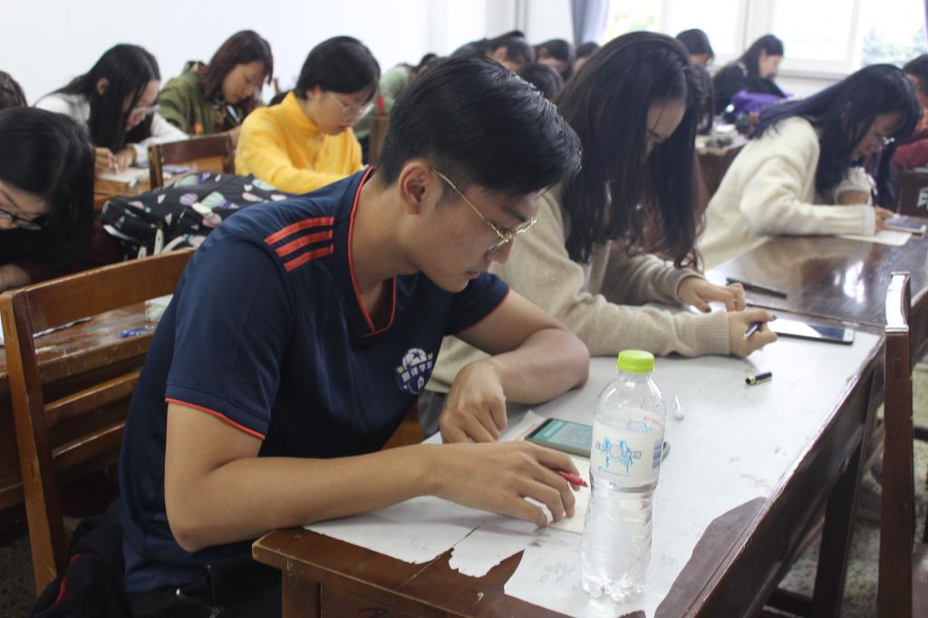 团委学生会承办的“杏坛杯”三笔字大赛于d307、d311、d315教室举行。本次比赛由党委副书记董家忠、董秀玲老师、李凯老师担任评审教师。大二、大三部分学生用参加了本次比赛。