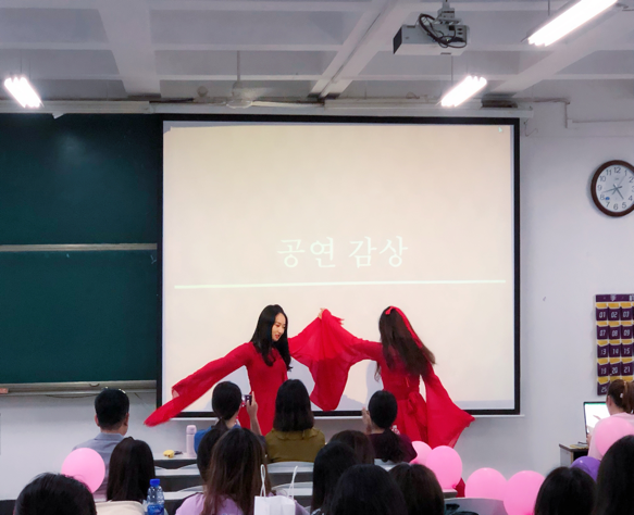 比赛伊始之前,金东国副教授对本次比赛发表致辞,表达对本次比赛的期待。比赛由定题演讲、即兴回答两部分组成。演讲主题涉及时事热点、韩国文化等,内容妙趣横生、丰富多彩。大三的同学们经过了三年的韩语学习,有着很强的语言实力,内容充实,发言流畅,竞争可谓非常激烈。在每一位同学韩语演讲结束后,评委老师进行即兴问答,同学不慌不忙地组织语言。参赛选手们稳定的发挥、机智的应答及出色的才艺展示给在场的所有观众留下了深刻印象,也为本次校园文化艺术节韩语相关活动锦上添花。