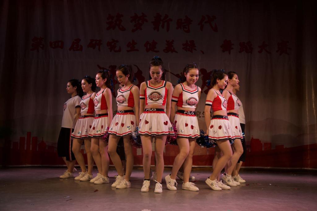 我院精心筹划、积极准备比赛,在经过两个月的艰辛排练后,队员们步伐整齐地进入比赛场地,作为最后一支出场的代表队,他们用身姿诠释青春的奔放,用热情编织青春的浪漫,充分展现了压轴表演的精彩。活力四射的舞姿、动感的青春舞步、高难度的动作紧紧吸引了观众们的眼球;高潮迭起,绚丽的造型和整体编排赢得了满堂喝彩,现场掌声不断,比赛也被推向高潮。