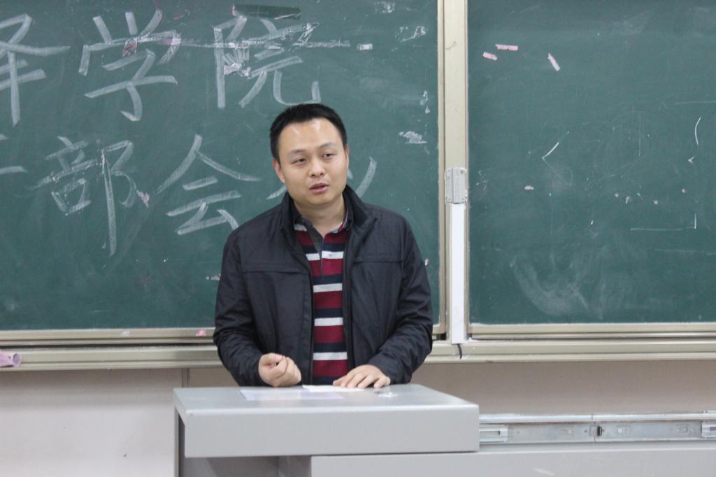 大家庭,并要求各位学生干部端正态度跟党走,远离邪教相信科学,合理使用电子设备,规范自身言行举止等。然后,团委书记岳峰发表讲话,指出干部要有服务他人意识,有责任担当意识,要明确自我定位,踏踏实实做好自己的本职工作,时刻不忘干部身份,保证学生干部队伍的先进性、模范性。接着,团委、学生会各部长汇报前期工作及未来工作设想;社联主席李瑞对本学期的社联工作提出要求。最后,学生会主席孟彬为大会做了总结,大会圆满结束。