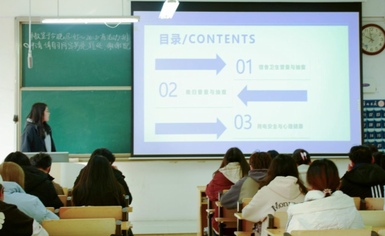 本次培训内容涉及宿舍卫生普查与抽查、晚归普查与抽查、用电安全与心理健康等三方面。讲解宿舍管理条例时,生活部李乐聪详细讲解了卫生检查形式、晚归普查与抽查的各项规定,为构建安全、整洁、有序的宿舍环境提供了有效指引。在文明行为引导培训中,她通过实际案例加深了大家对良好行为规范的认识,激励大家在日常学习和生活中积极践行文明规范,带动身边的同学共同参与文明校园建设。