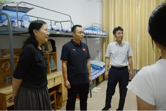 院长夏云、党委副书记岳峰、2025级新生辅导员孙杰琼走访新生宿舍,以暖心关怀为新生筑牢校园生活的安心之基。