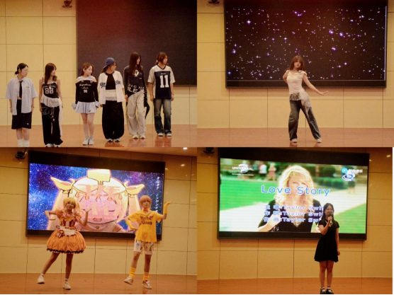 舞蹈队活力满满的《Fancy》中拉开帷幕,灵动舞姿瞬间点燃全场热情,尽显青年学子的朝气与活力。随后,多元节目轮番登场,为观众带来沉浸式视听体验:韩嘉欣以干净温润的声线演绎《Diamonds》,细腻的情感表达直抵人心,赢得满堂喝彩;李璐璐的《中华武术》表演刚柔并济,一招一式间尽显中华传统文化的磅礴魅力;舞蹈类节目更是风格迥异、亮点纷呈——汪林润的《Jazz串烧》节奏鲜明、热情奔放,刘民心的《Drama》气场全开、活力四射,Nyamo次元社的《宇宙香料》则俏皮灵动,舞者们的每一次跳跃与旋转,都将青春的蓬勃力量展现得淋漓尽致,让晚会气氛持续升温,高潮迭起。