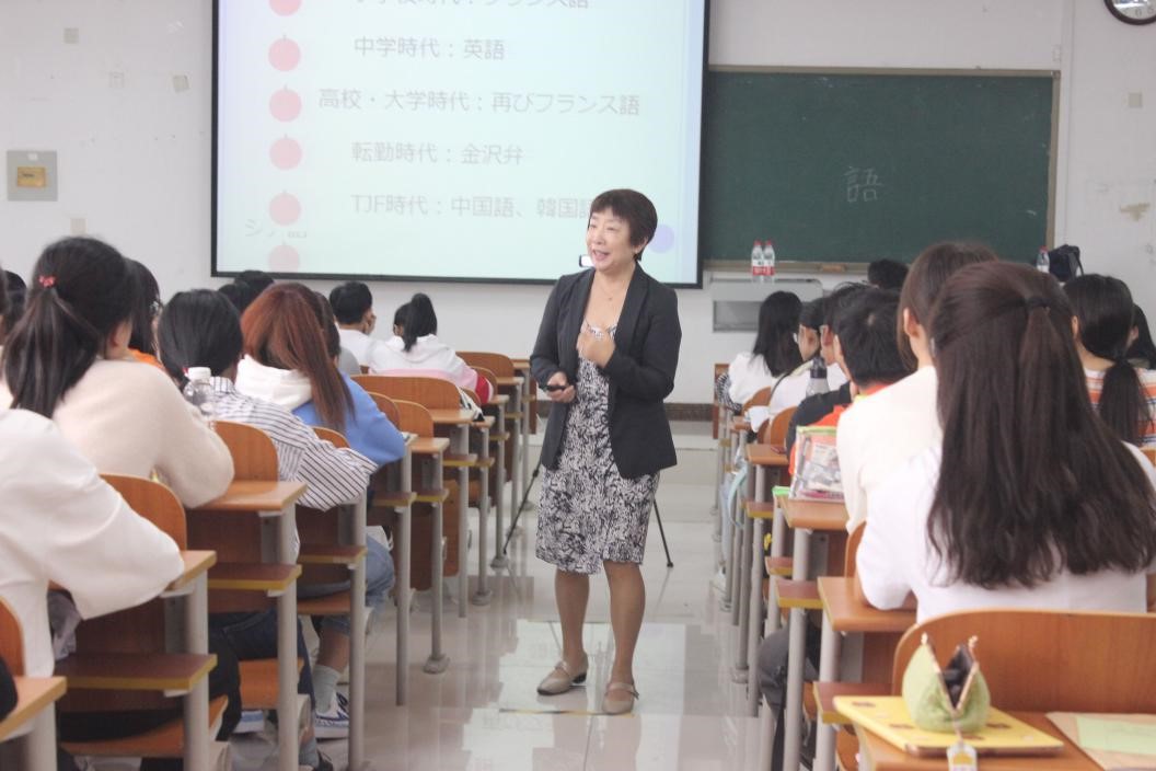 副院长宋晓凯、外教田畑千秋、杜艳等教师带领全体在校本科生和研究生聆听了本次讲座。