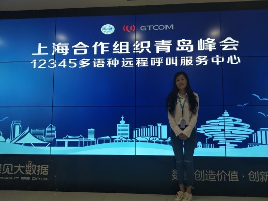 2014级商务英语二班迟玉凤同学在本次实习中的岗位是中文坐席,她表示:相较于英语译员,中文坐席的专业难度较低,对外语专业知识的掌握要求也不是很高,但这份工作仍然需要以非常认真的态度来对待。此次多语种远程呼叫中心为上合峰会提供了六种语言服务,中文也是其中之一。峰会召开期间,中文坐席负责回答一些与峰会会务相关的来电,比如说如果有人需要俄语翻译,可以通过中文坐席实现内部转接,帮助三方交流顺利进行。另外青岛市民关于峰会的疑问也需要中文坐席提供解答。总体来说,中文坐席的工作压力较小,但是工作量很大,中文服务并不总是千篇一律,处理各式各样的问题需要很强的应变能力,而应答的速度和质量必须确保及时、灵活和准确。迟玉凤说,有机会为上合峰会尽绵薄之力她感到非常的荣幸。在这一个多月的时间里自己最大的收获就是开阔了眼界,一方面是认识了许多优秀的同事,在他们身上可以看到闪闪发光的优点,大家会共同学习互相交流;另一方面则是加深了对自身的省察和思考。