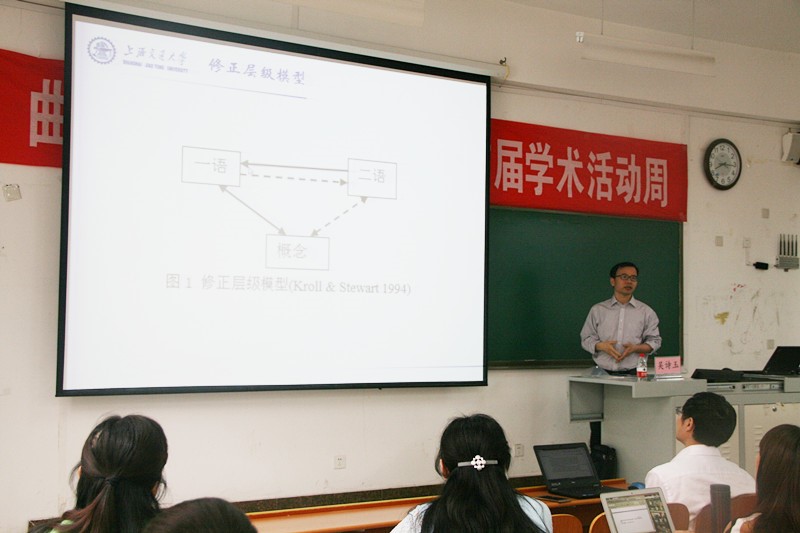 2017年5月20日上午,我院分别在JS107与JS705成功举办了“番号鸽 首届学术活动周”系列讲座第七讲“中国英语学习者的词汇与概念表征发展模式研究:来自混合效应模型的证据”及第八讲“第二语言阅读‘熔断’假说的认知心理证据:在线篇章处理的范式”。本次讲座由上海交通大学吴诗玉副教授主讲,我院夏云副教授与语言与脑科学研究中心周统权教授主持,我院全体教师、研究生和部分本科生及其他学院的部分教师参加了本次讲座。