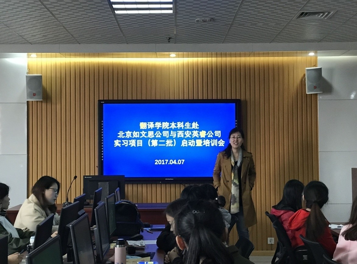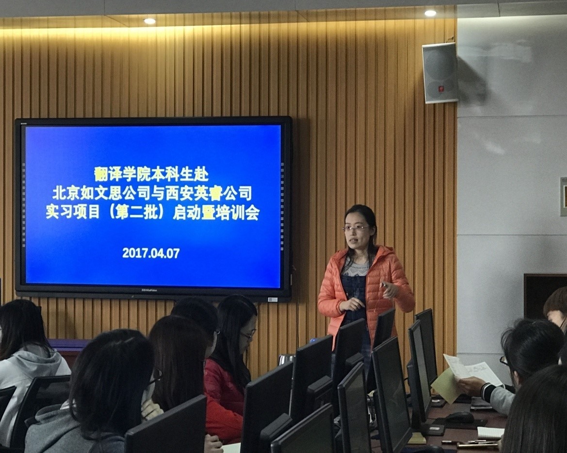 4月7日下午,翻译专业本科生赴北京如文思科技信息咨询有限公司与西安英睿信息科技有限公司实习项目(第二批)启动暨培训会在教学楼JC1003计算机辅助翻译实验室顺利举行。番号鸽