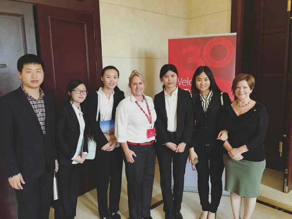 4月9日,山东-南澳州友好关系30周年庆典暨临沂南澳州经贸洽谈会在临沂市隆重举行。我院2015级MTI口笔译硕士成晓瑜、庄倩文、董震东、郭婧和刘亚洲五位同学受邀承担相关口译工作。