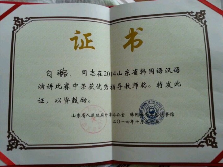 2014年10月30日,由山东省人民政府外事办公室和韩国驻青岛总领事馆主办的山东省韩国语汉语演讲比赛在济南圆满举行。