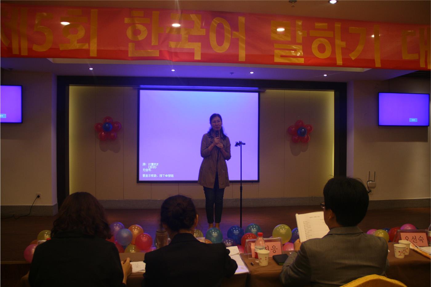 儒风酒店2楼会议厅拉开帷幕。科研副院长夏云、韩国语系主任金东国副教授、卢正爱副教授、韩国籍博士金敬姬博士、金明准等出席了本次大赛。来自山东外国语职业学院的五位老师组成评委团。