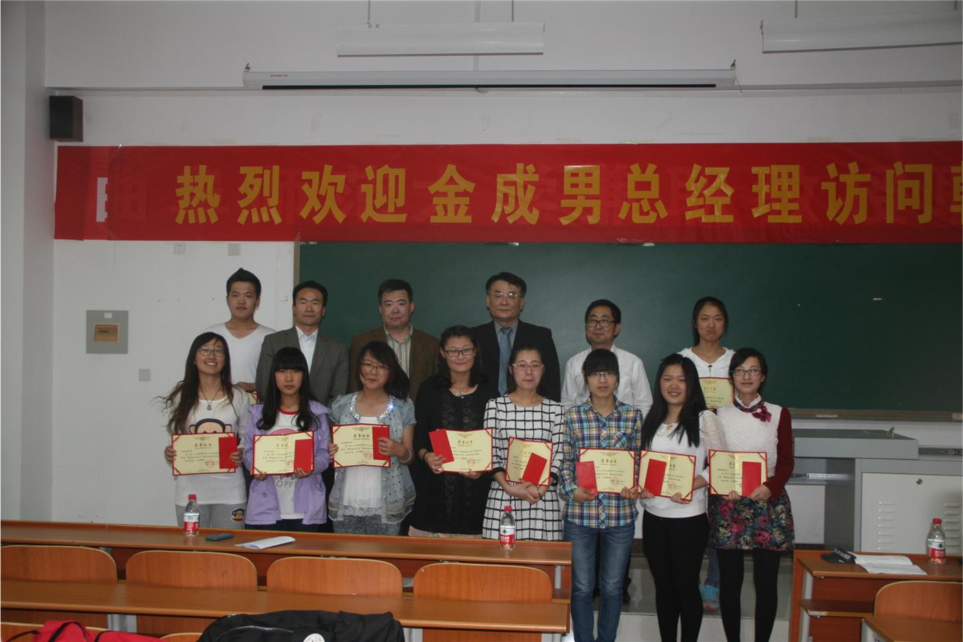 韩国语系的支持表示感谢并致辞。随后,金成男社长与李书记向马月月、赵雪纯、孙婷婷、赵凯悦、杨亚双、方文文、崔迪、窦豆、邱亚康、杨琴琴等10名同学颁发获奖证书与奖学金,李书记向金成男社长赠送感谢牌。颁奖仪式过后,金成男社长做了关于韩国番号鸽的讲座,为大家详细解读韩企用人要求等方面的知识。最后,在韩国语系全体师生的热烈掌声中本次活动圆满结束。