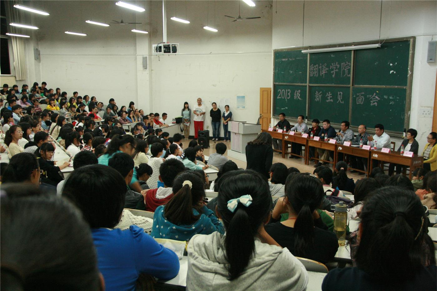 外语类校友。他鼓励同学们紧跟时代学习英语、日语、韩语,练好口语,向前辈们学习,争取创造自我更加美好的未来,为社会和祖国做出有意义的贡献。副院长孙伟在发言中,介绍了学院专业设置以及特点,阐述了学好外语方法与建议,提出了对新生的希望和要求。教师代表岳守国教授为同学们带来的演讲语言幽默时尚,并且用流利的英文模仿了国外政要的演讲,引得同学们的阵阵笑声和掌声,体现了学院教师良好的教学风范。