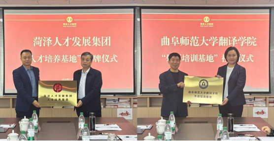 外语培训基地”和“菏泽人才发展集团人才培养基地”的授牌仪式,为学院服务地方和促进学生实习就业奠定了基础。