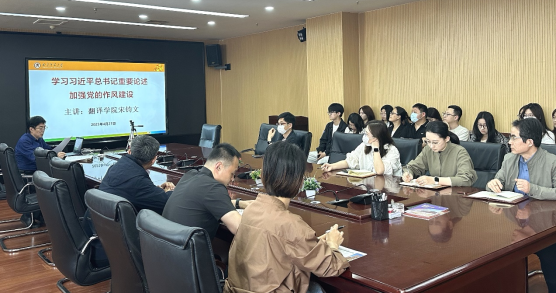 召集教工党支部全体党员和4个学生支部委员、主要学生干部中的党员代表,同上一堂题为《学习习近平总书记重要论述,加强党的作风建设》的专题党课,学院党委书记宋钧文主讲。