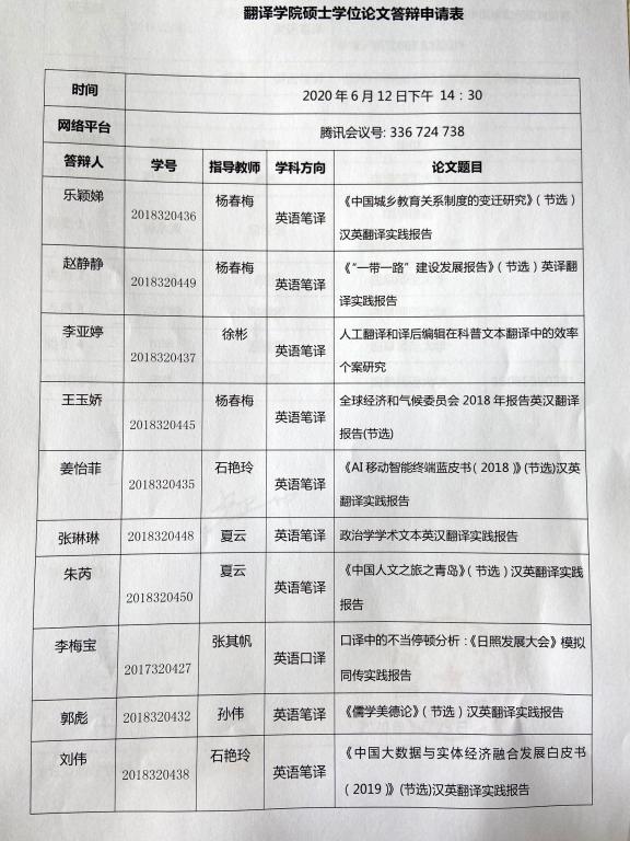 番号鸽 2020届全日制研究生硕士学位论文答辩安排3