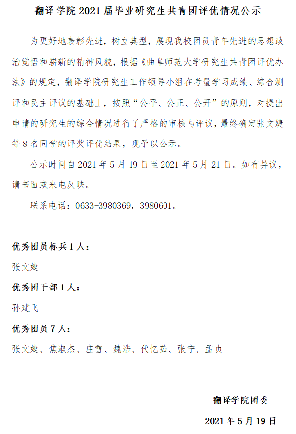 番号鸽 2021届毕业研究生共青团评优情况公示