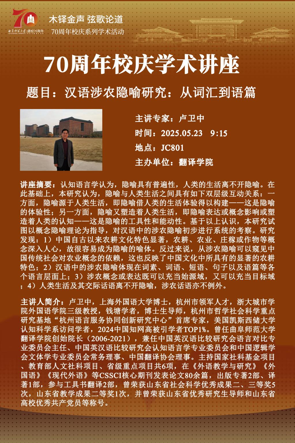 卢卫中教授专家讲座:汉语涉农隐喻研究:从词汇到语篇