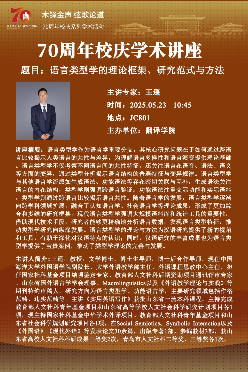 王遥教授专家讲座:语言类型学的理论框架、研究范式与方法